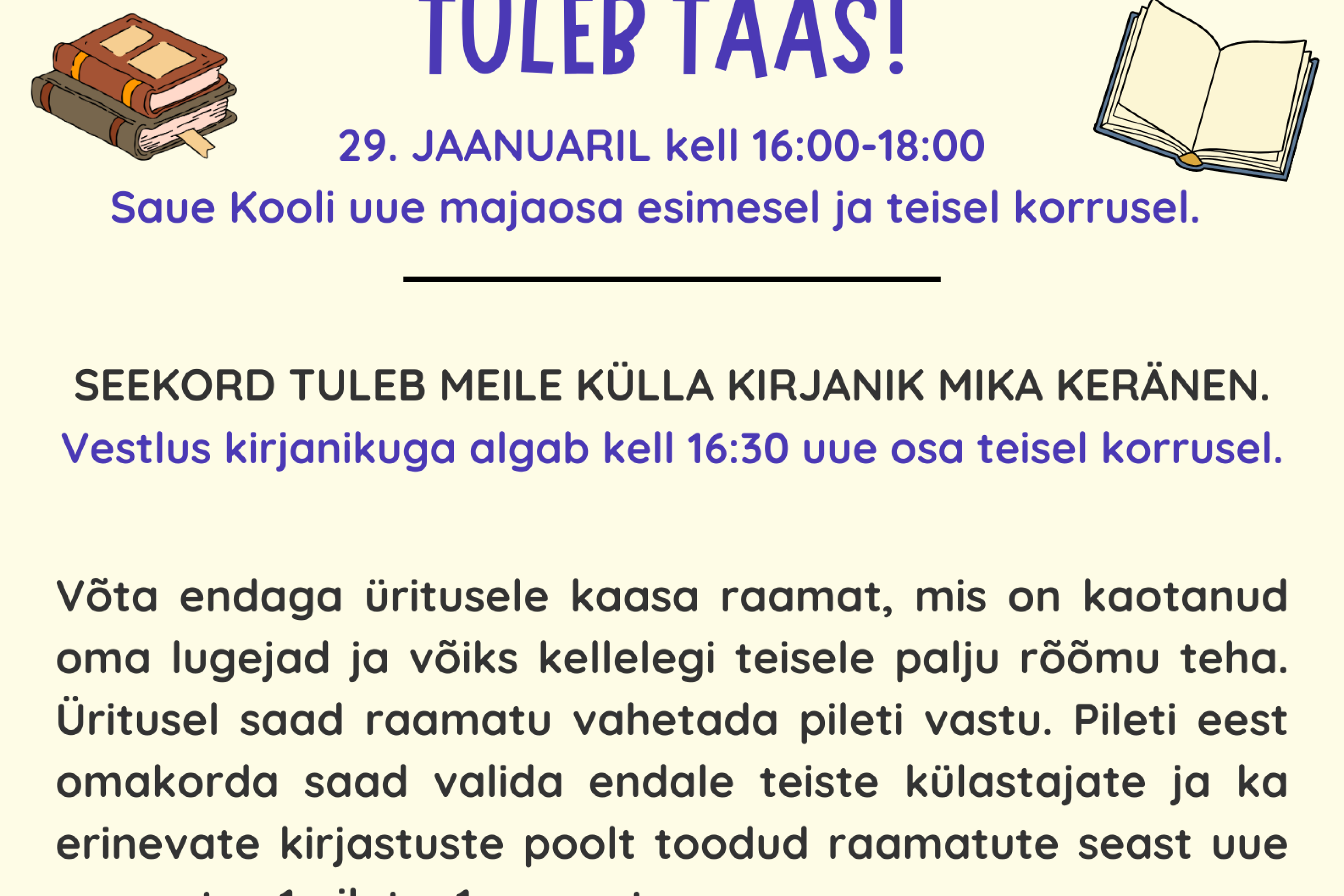 Jaanuari sündmused Loomise kuupäev 07.01.2026 Autor Grete Põldma Tööpakkumine eripedagoog - väikeklassi õpetaja Loomise kuupäev 15.12.2025 Autor Eveli Rea Jõulune stiilinädal koolis Loomise kuupäev 15.12.2025 Autor Grete Põldma Detsembri tegevused Loomise kuupäev 03.12.2025 Autor Grete Põldma Vaata rohkem